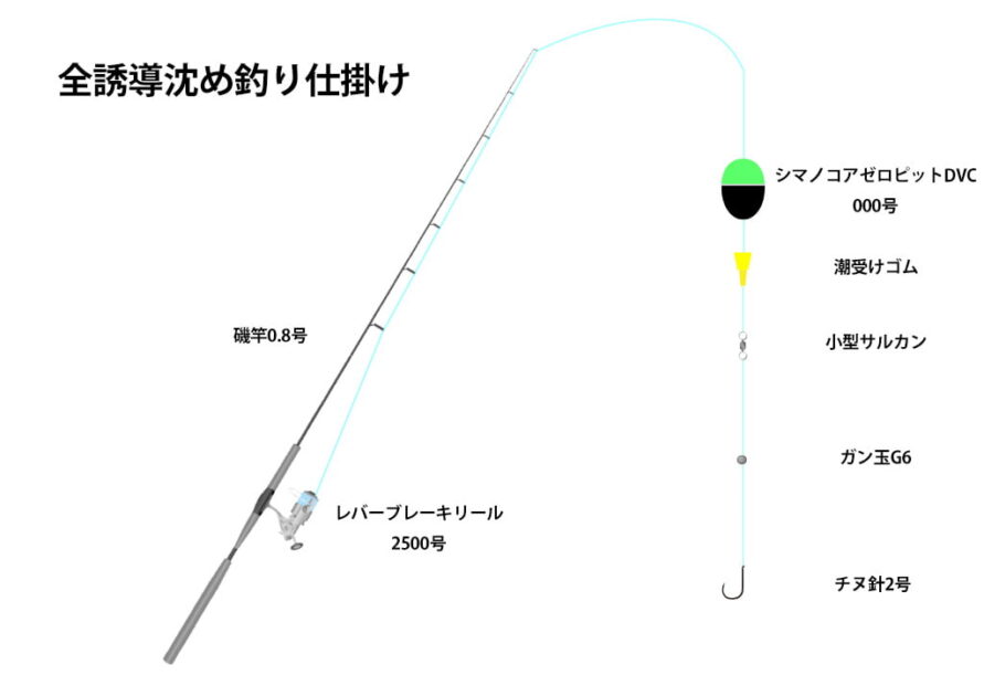 ウキを沈めて仕掛けがうまく馴染むようにするために、全誘導沈め釣りの仕掛けに変更しました。